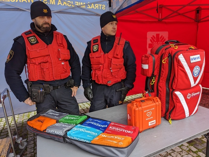 Akcję zainaugurowała konferencja prasowa, podczas której przedstawiciele Straży Miejskiej otrzymali od Caritas Polska plecaki z wyposażeniem medycznym.